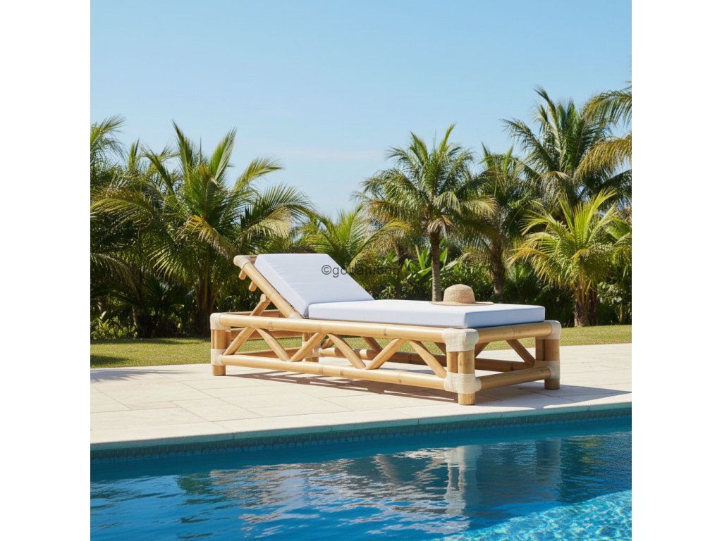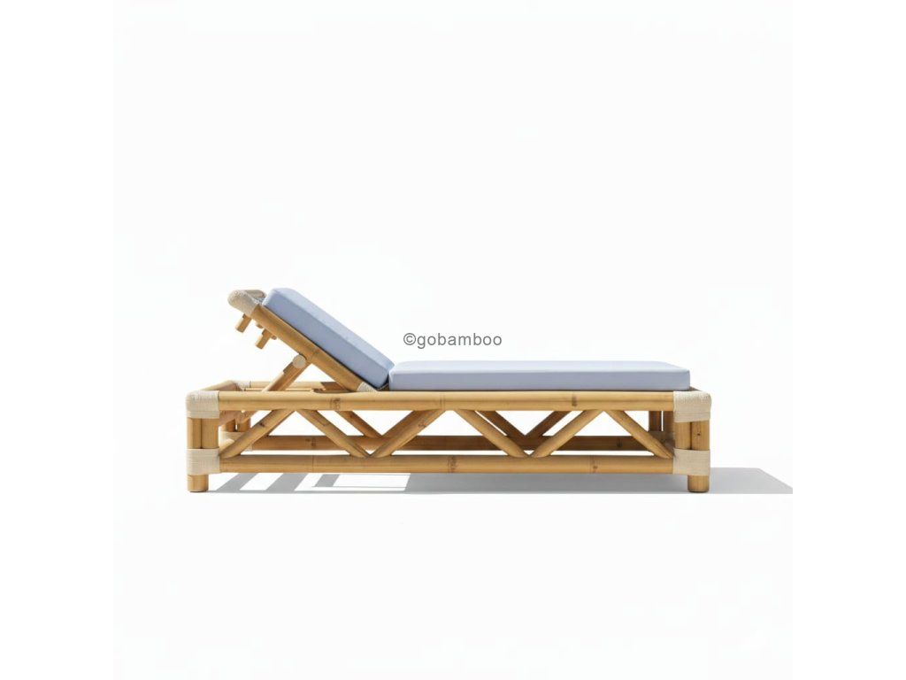 Masivní konstrukce z přírodního bambusu zajišťuje vysokou stabilitu a dlouhou životnost, přičemž si zachovává vizuální lehkost. Precizně zpracovaný vzhled a charakteristická geometrická podpora dodávají lehátku řemeslný charakter a nadčasový design. Polohovatelná zádová opěrka poskytuje maximální komfort při relaxaci, čtení nebo opalování.