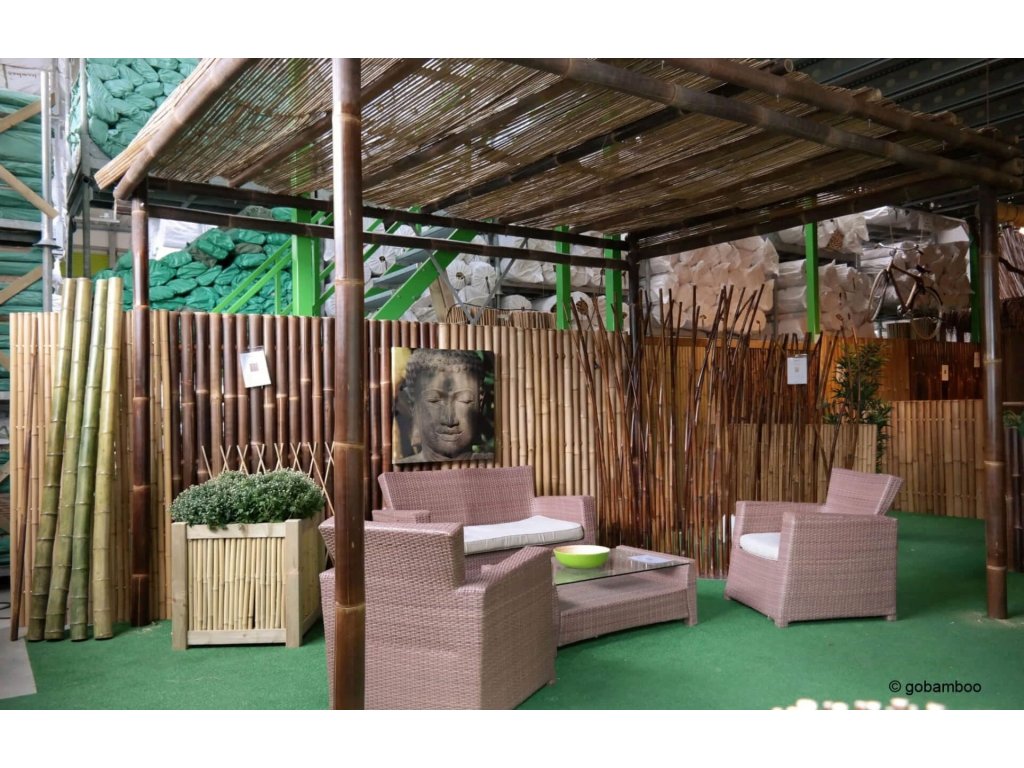 Bambusovou pergolu lze zcela nebo částečně uzavřít s volitelnými panely z bambusového plotu nebo válcovaným bambusovým plotem.