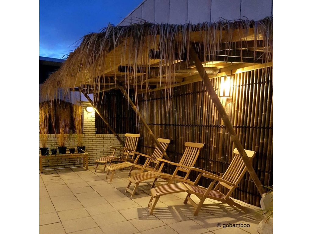 Půlkruhové bambusové stínící panely jsou speciálně navrženy pro instalaci k existujícímu plotu a ke zdi. Jsou lehčí a levnější než standardní panely s tmavými bambusovými tyčemi.