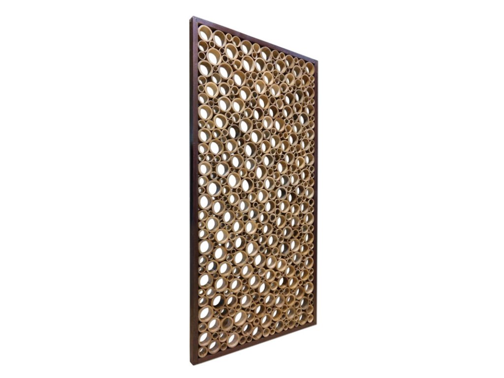 Možnosti využití těchto bambusových přepážek místnosti jsou prakticky neomezené. Například můžete na horní část bambusové zástěny položit skleněnou desku a vytvořit tak působivou stolovou plochu. Nebo co takhle kovové podpěry připevněné k rámu pro uchycení přepážky k podlaze a/nebo ke stropu? Pomocí několika malých pantů lze také spojit dvě zástěny a umístit je do různých poloh.